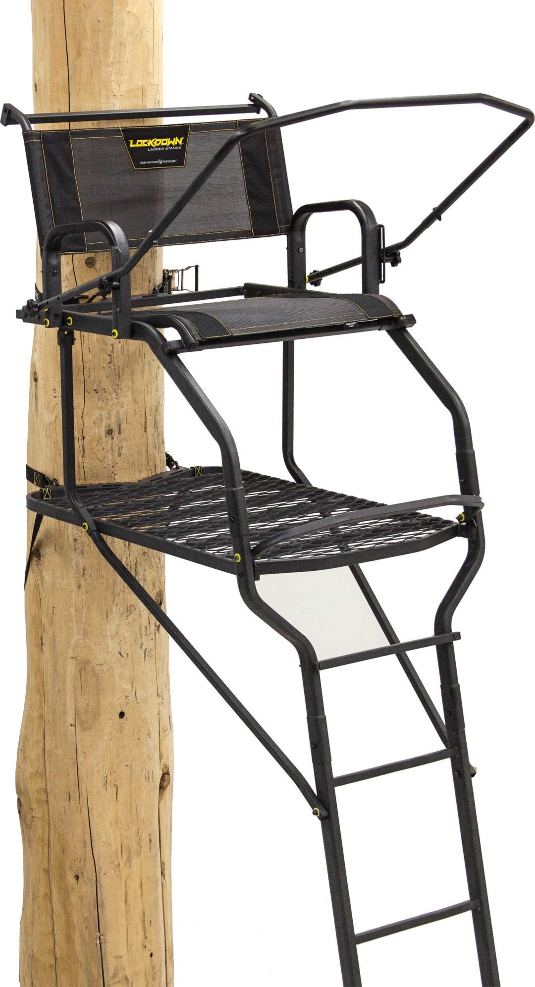 Delivering the largest seat on any treestand the big denali 1 5 man 20 ladder stand from hawk will ensure that you are hunting comfortable all season long. Includes integrated footrest flip back shooting rail and centered arm rest. Combining trustworthy performance with backyard level comfort the big denali offers lounger like comfort with its dual extra wide 26 h x 26 w x 24 d zero pressure xxl meshcomfort seats. Big game treestands guardian xl 18 ladder stand.