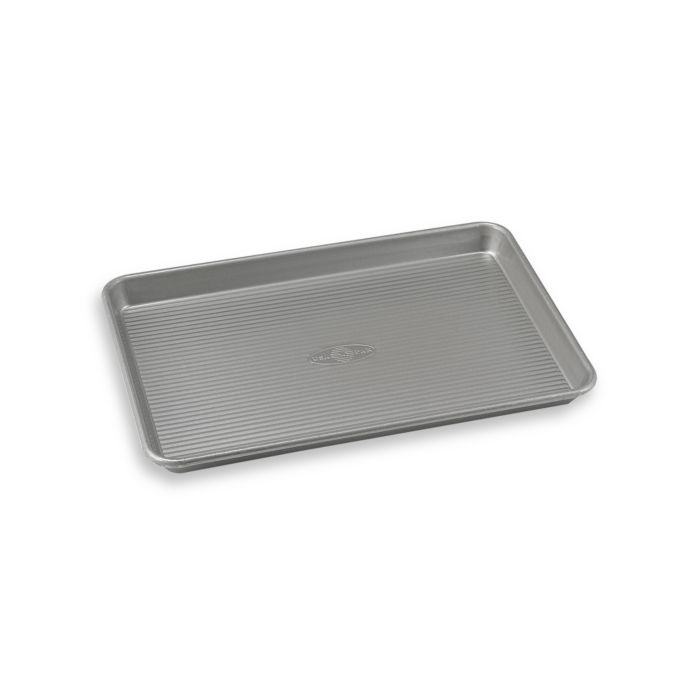 The vollrath wear ever standard duty half size sheet pan 18 gauge model 5303 is well reviewed on amazon. Jelly roll pan a wide flat pan similar to a cookie sheet or baking sheet with sides. 27 x 39 x 2 5 cm. 2 x 4 x 1 inch mini loaf pan.