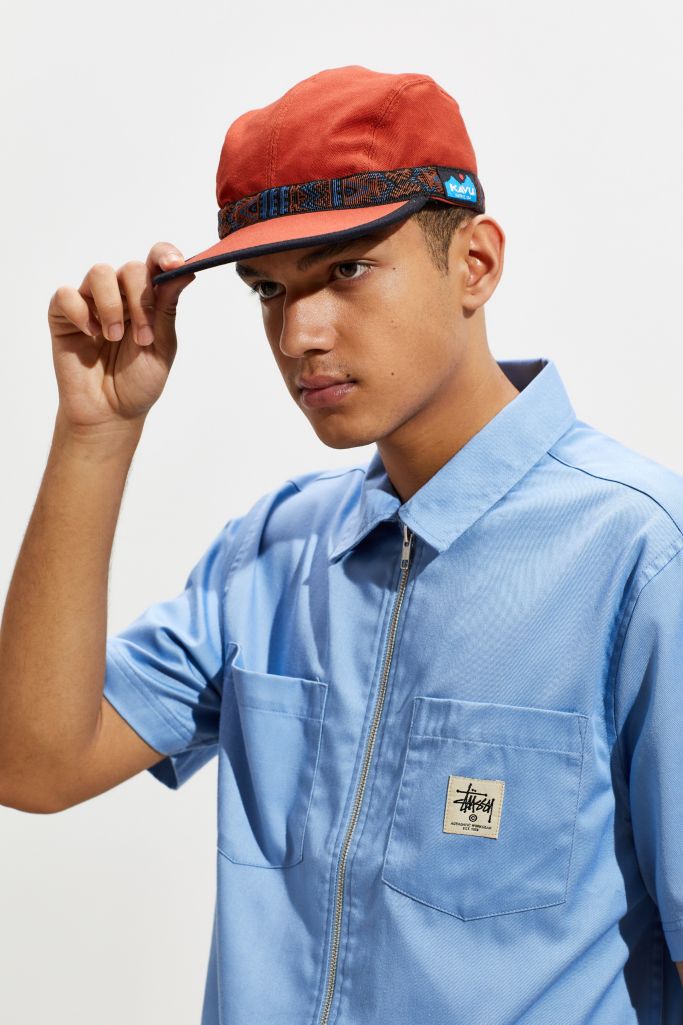 The kavu strap cap is a great choice for hiking or and is made with tough materials to handle what mother nature can throw at it. Search submit clear text when autocomplete results are available use up and down arrows to review and enter to select. Kavu men s synthetic strap visor 4 1 out of 5 stars 30. Made of cotton the strapcap features a low profile 4 panel design black underbill to.