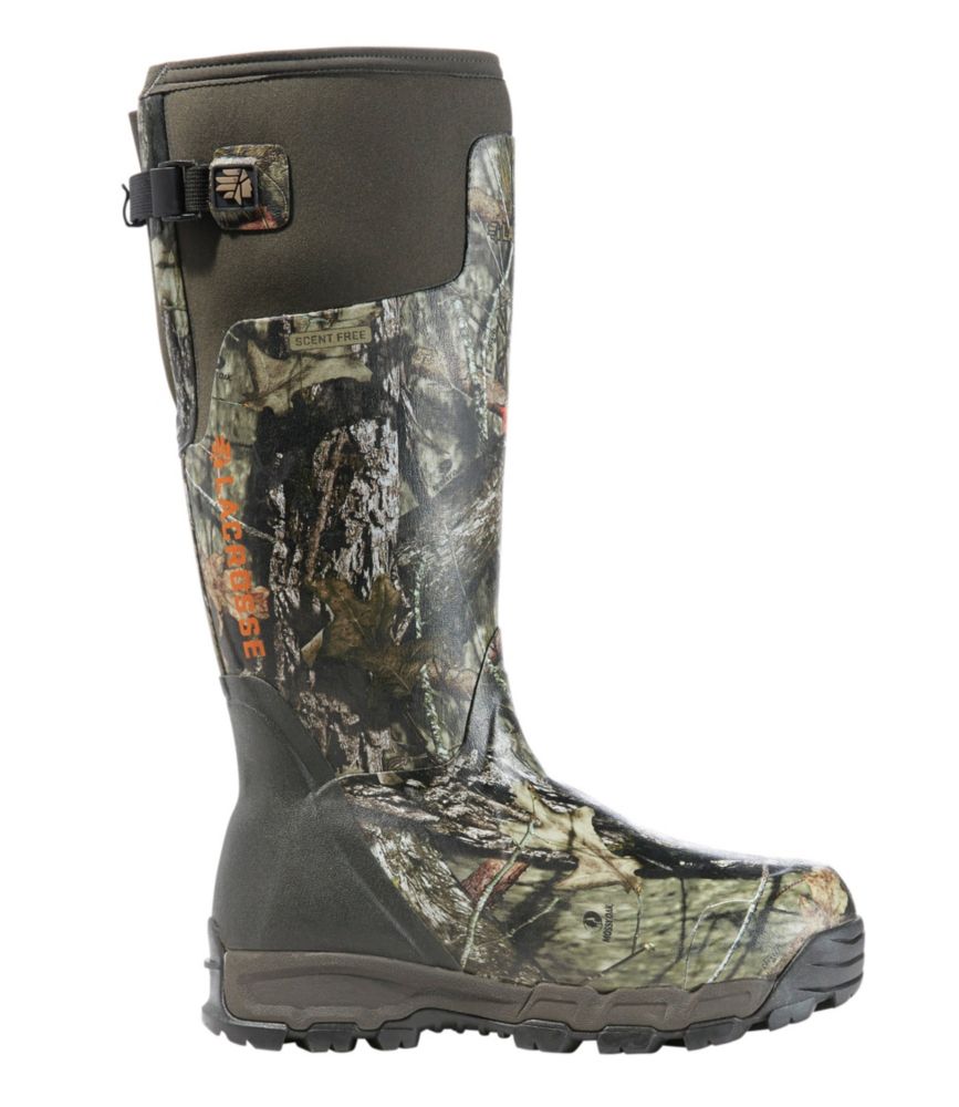Built with natural waterproof rubber insulating neoprene and 1000g thinsulate ultra insulation these tall hunting boots lock in heat and seal out moisture to keep you comfortable down to. Its durable neoprene gusset on the back accommodates different calf sizes and makes it easy to slide the boot on and off. The alphaburly also features lacrosse s innovated alpha technology by combining high quality scent free rubber with naturally insulating neoprene resulting in an extremely durable lightweight and comfortable boot. Lacrosse alphaburly pro realtree extra boots feature 800g thinsulate ultra for comfort.